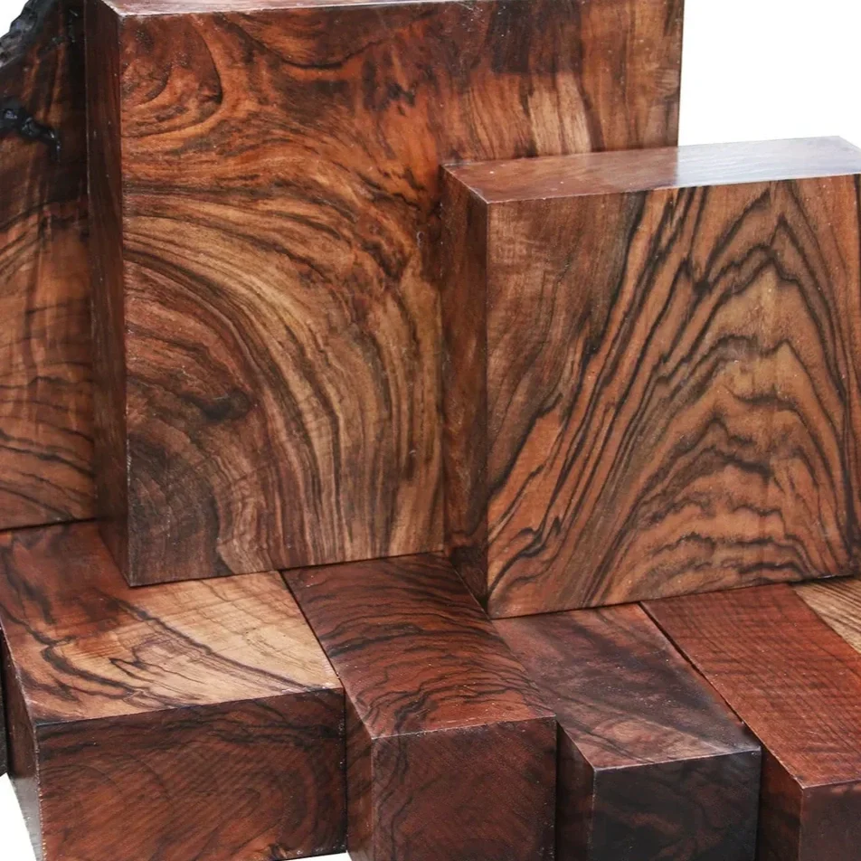 a highly sought-after Central American hardwood known for its dramatic, zebra-like contrast of golden-brown wood with dark brown to black streaks, often featuring striking "eyes" or wild grain patterns. Renowned for its high natural oil content and smooth, polished finish, this dense, durable wood is popular for specialized turnings, knife handles, musical instruments, and high-end cabinetry.